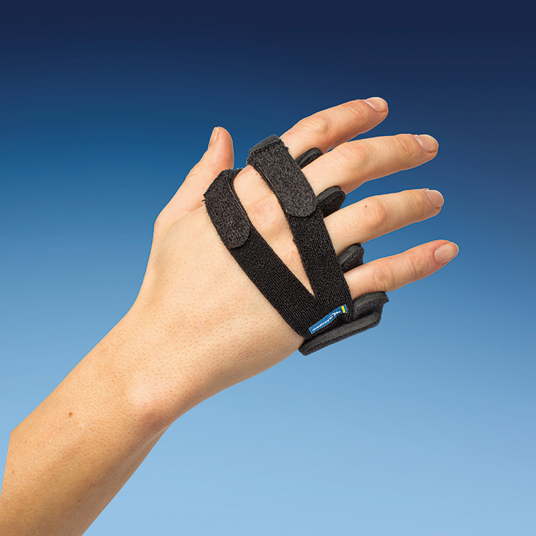 Ulnar deviation of the MP-joints is common among patients with rheumatoid arthritis and other inflammatory processes. The joint drifts gradually to the ulnar side which eventually leads to problems to create a functional grip. The NRX® Ulnar deviation splint is designed as a volar platform with a malleable metal core that has been encapsulated in the NRX® material. The metal core can easily be adjusted and shaped by hand to provide stability to the MP-joints and to support the volar arch. The splint works excellent during activity but can also be used as a resting hand splint to reduce pain during sleep. The splint can also be used to separate fingers on stroke patients with problems with the volar hygiene or it can also be used to protect the palmar area from pressure. The NRX®-material provides a good pressure displacement, doesn’t absorb moisture and can easily be washed. It can also be used for ADL, even in water since it dries very quickly.